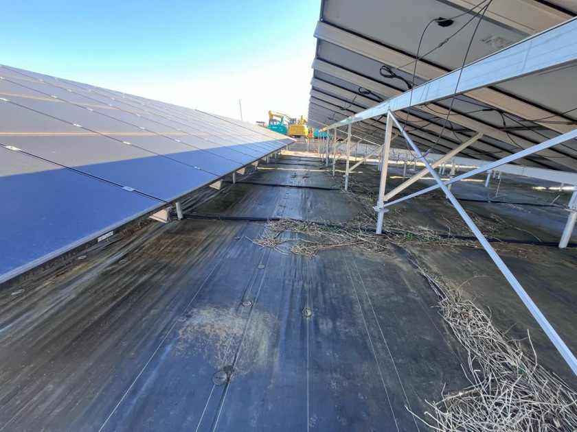 ソーラーフロンティア×オムロン 過積載97.68kW 防草シート設置済み