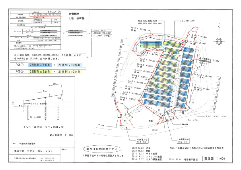 パネル:ジンコーソーラ371.20Kw パワコン:HUAWEI249.9kw 利回り9%