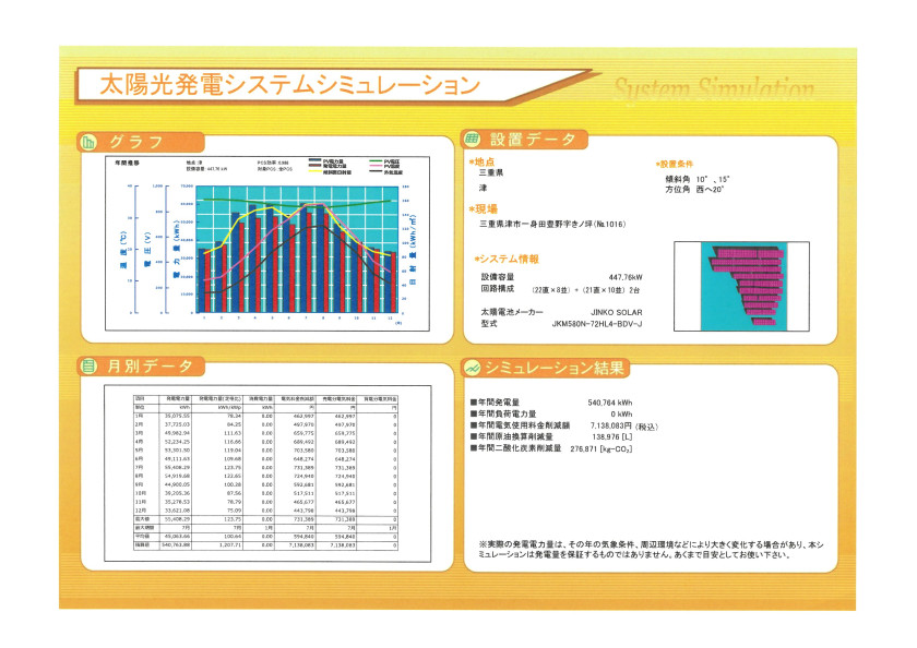 パネル:ジンコーソーラ447.76Kw パワコン:HUAWEI240kw 利回り9.51%