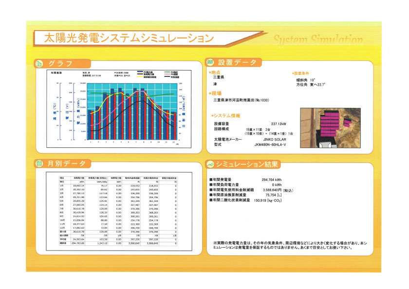 パネル:ジンコーソーラ237.12Kw パワコン:HUAWEI150kw 利回り9.02%