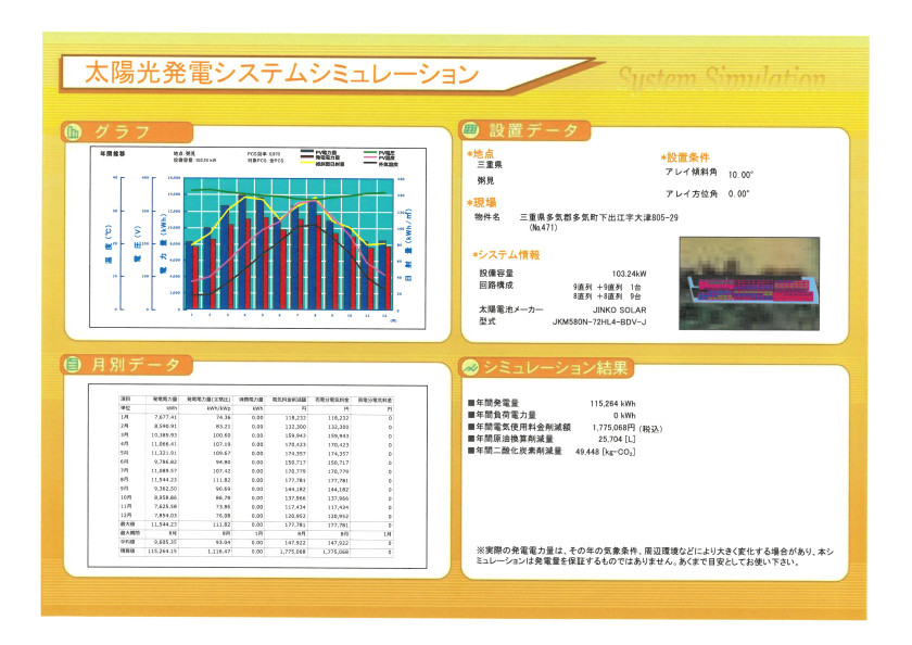 ジンコーソーラー103.24Kw パワコン:HUAWEI49.5kw 利回り10%